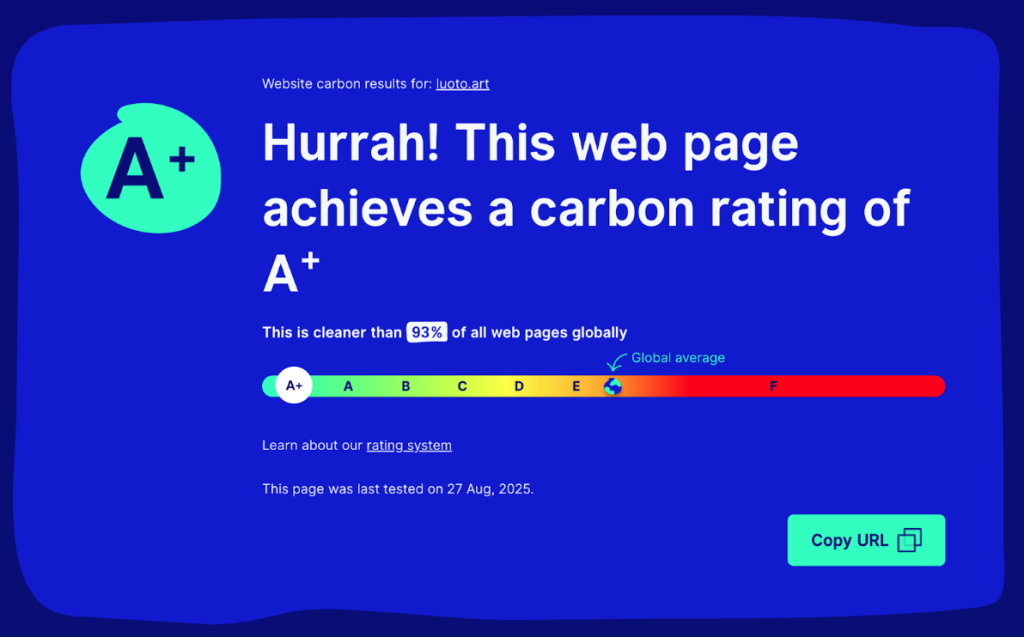Website Carbon antaa sivustolle arvosanaksi parhaan A+.
