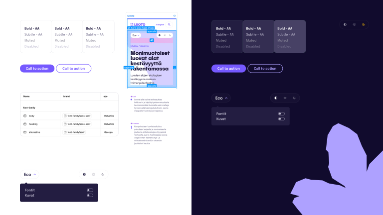 - Dark-mode: Modernin käyttökokemuksen takaamiseksi sivusto tarjoaa mahdollisuuden valita perinteisen vaalean ja tumman tilan välillä sekä mahdollisuuden käyttää automaattisesti laitteen omia järjestelmäasetuksia.