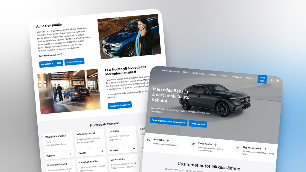 “Palvelun konseptointivaiheessa huomattiin, että digitaalinen asiakaskokemus oli verkkosivustolla pirstaloitunut, ja oli tarve uudistaa myös sisältöjä. Verkkosivut eivät vastanneet kilpailuun alalla. Sisällöt ja CTA-nappulat eivät kuljettaneet asiakasta ostopolulla eteenpäin.”, Taina Kivistö-Valta, Vehon Digital Manager avaa.