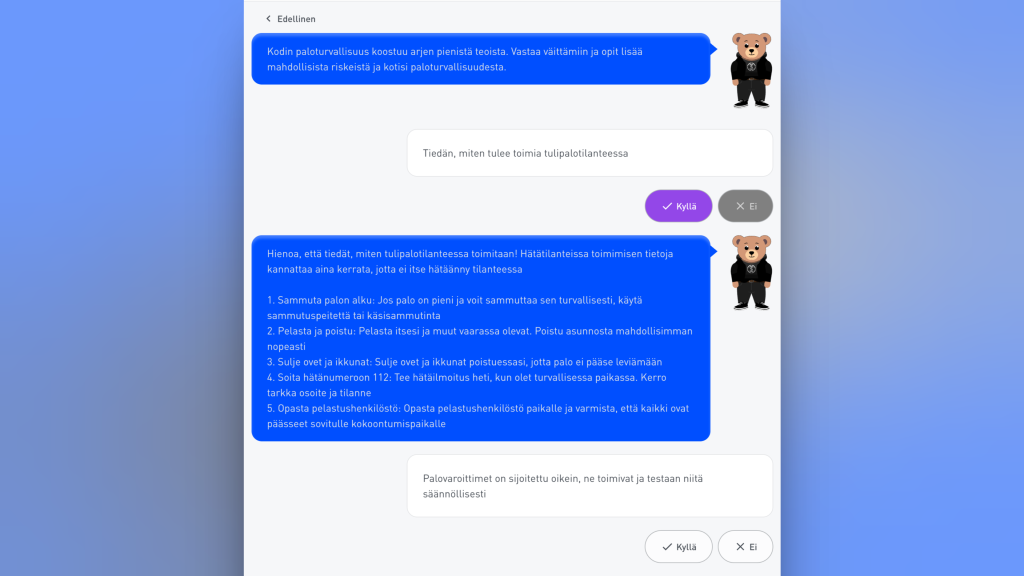 - Residents receive immediate feedback and concrete instructions based on their answers, helping them absorb vital safety information effectively without having to read through heavy, dense text.